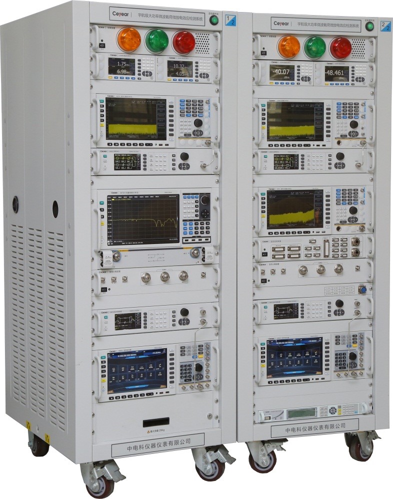微放電效應的產生是一種非線性過程,信號(hào)在發生微放電的(de)器部件上傳輸時,會造成信號(hào)的非線性變化,從而導致傳輸、反射信號幅相參數、噪聲參數、頻譜參數及S參數等發生變化,微放電效應檢測即據此(cǐ)實時監測各項信號(hào)參數的變化情況。大功率微放電效應檢測係統(tǒng)主要由專用測試子係統、大功率固態功放、熱真空環模(mó)子係統、自由電子放射源、大功率傳輸鏈路、係統主控及軟件等六大部分組成。係統在測試過程中可記錄(lù)各項功率及頻譜(pǔ)等參數,根(gēn)據各項參數的變化情況綜合判斷微放電是否發生,當微放電發生時,能夠有效關斷大功率信號源(yuán)及供電電源,以免對檢測係統本身造(zào)成損壞,最(zuì)終(zhōng)可穩定、有效的對產品微放電效應進行檢測。