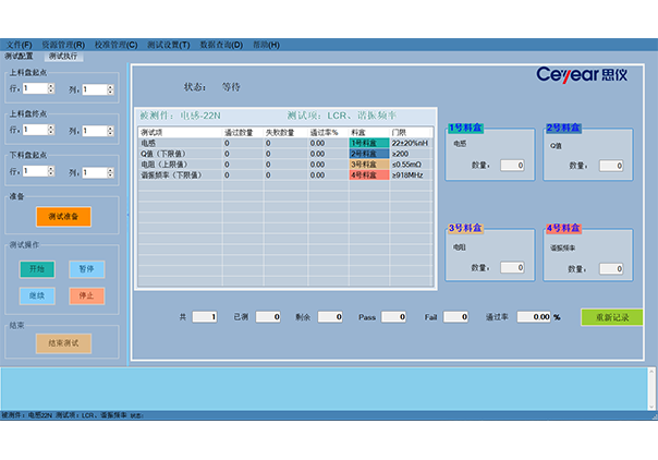 物料自(zì)動流轉過程中機械臂自動從上料盤夾(吸)取被測器件,並(bìng)在軟件的調度下依次完成各類型參(cān)數自動測試,測試合(hé)格品放入合(hé)格料盤(或編帶),不合格品分類放入到(dào)NG料盒中。整個過程全自動執行,無需人(rén)工參與,所有器件測試完成(chéng)後(hòu)會有燈光(guāng)提示。