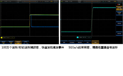 100萬個波(bō)形/秒的波形捕獲率,5GSa/s的采樣率,極大提高了毛刺和偶發事件捕獲(huò)的概率,讓您在更長的采集時間內查看到更多(duō)的(de)波形細節(jiē)。