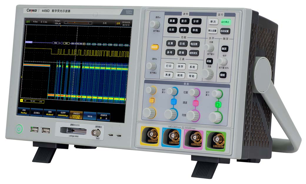 4456係列數字熒光示波器集數字示波器、邏輯分析儀、函數發生器、總線分析儀、數字電壓表五種儀器於一體,具有波(bō)形自(zì)動(dòng)設置、波形參數自動測量與統計、光標測量、直(zhí)方圖測量、數學運算、FFT分析、串行總線觸發與分析、極限與模板測試、功率測量與分析、波形錄(lù)製與回放、模數混合信號分析、任意函數發生(shēng)等功(gōng)能,支(zhī)持以太網程控,方便您集成開發使用。