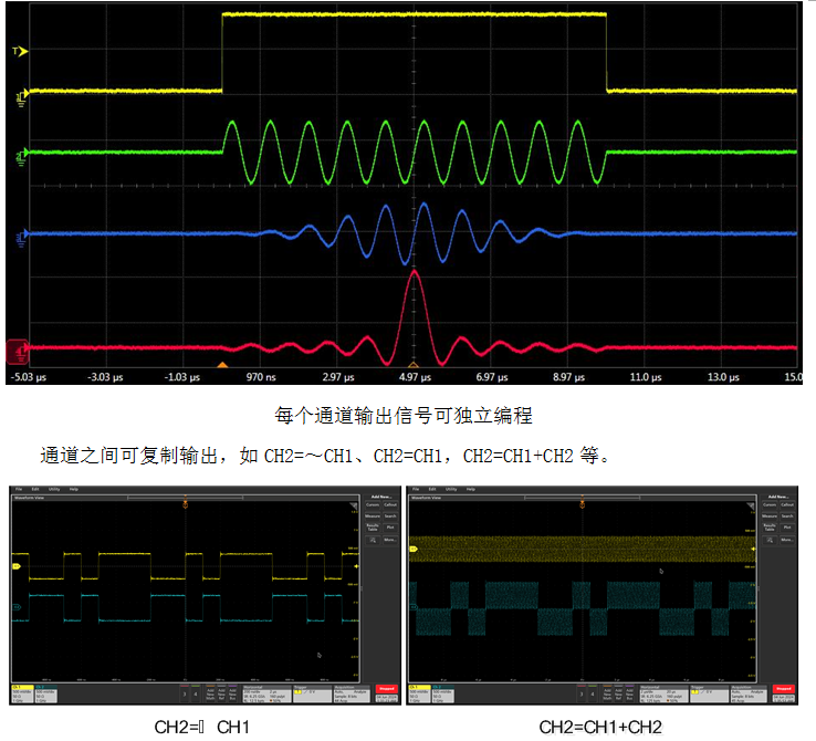 支持用戶自定義輸出波形的幅值、頻(pín)率、相位(wèi)、通道間相(xiàng)對延時以及其他特征(zhēng)參數。