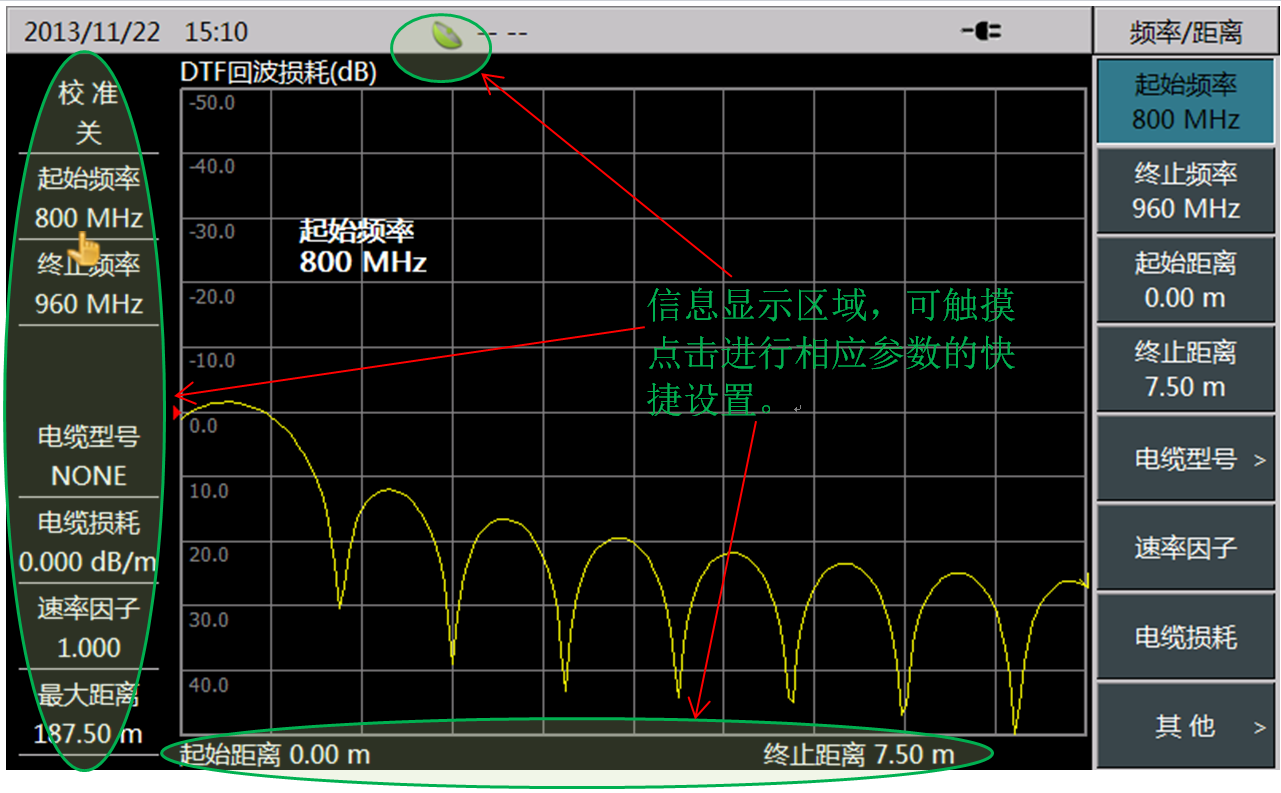 支持回波(bō)損耗、駐波比、電纜損(sǔn)耗、DTF回(huí)波損耗、DTF駐波比、Smith圓圖、相位共七種測量格式。可對電纜、天饋線係(xì)統(tǒng)進(jìn)行全(quán)方位的測量及故障診斷。