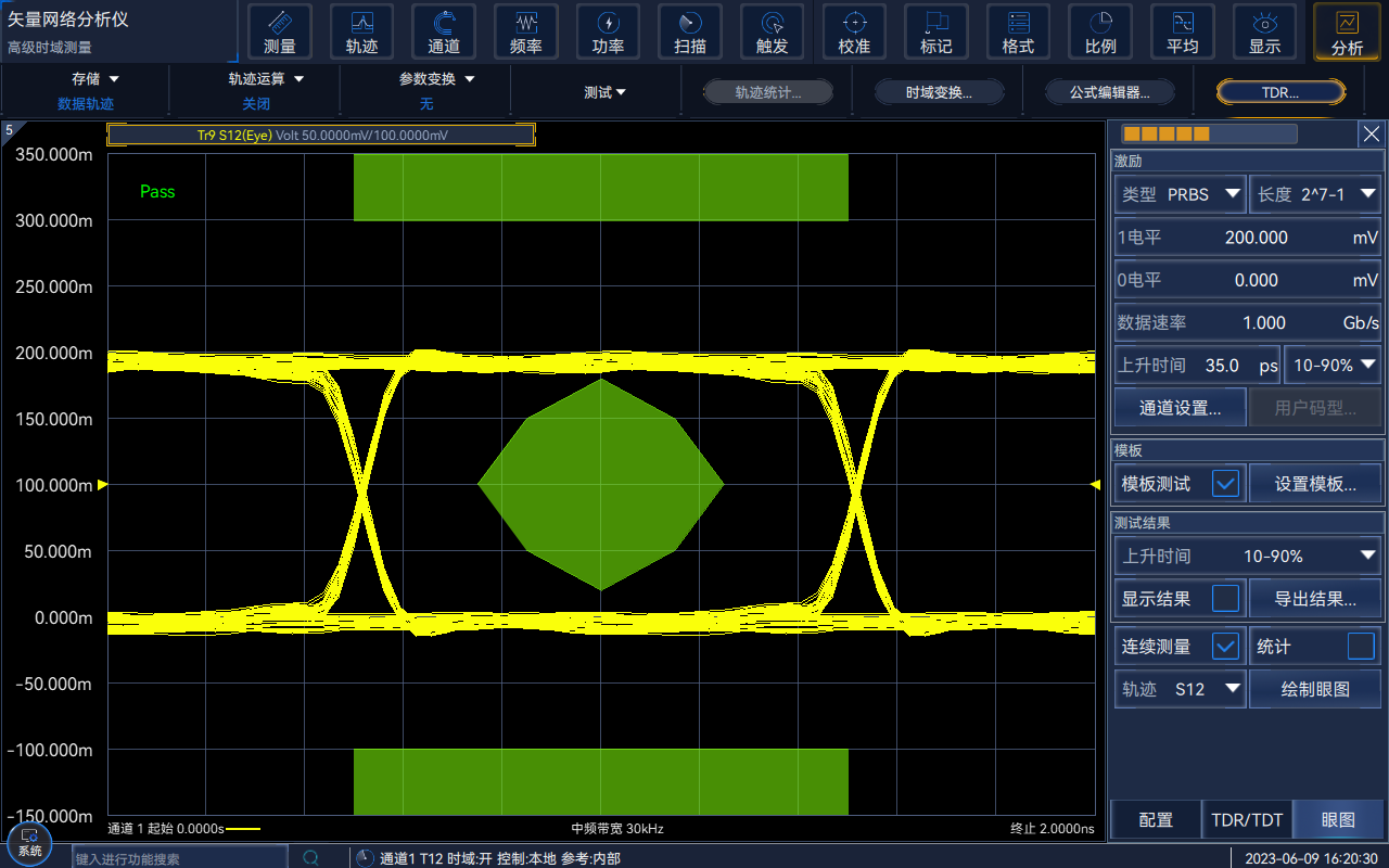 具備基於網絡參數的虛擬眼圖生成及分(fèn)析功能。根據不同的高速數字通信標準,可以使用預先定義好的眼圖模板進行高效Pass/Fail測試。可以在(zài)仿真眼圖施加抖動、噪聲等幹擾(rǎo),通過預加重和(hé)均衡等校正算法的加入。模擬真實環境(jìng)下高速鏈(liàn)路不同位置的仿真眼(yǎn)圖(tú)。