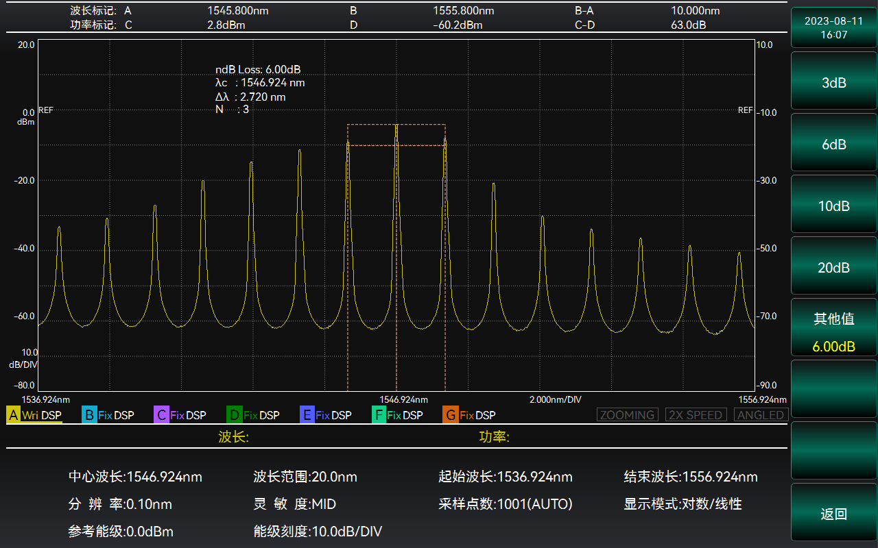 ndB損耗法測試中心波(bō)長和光譜帶寬