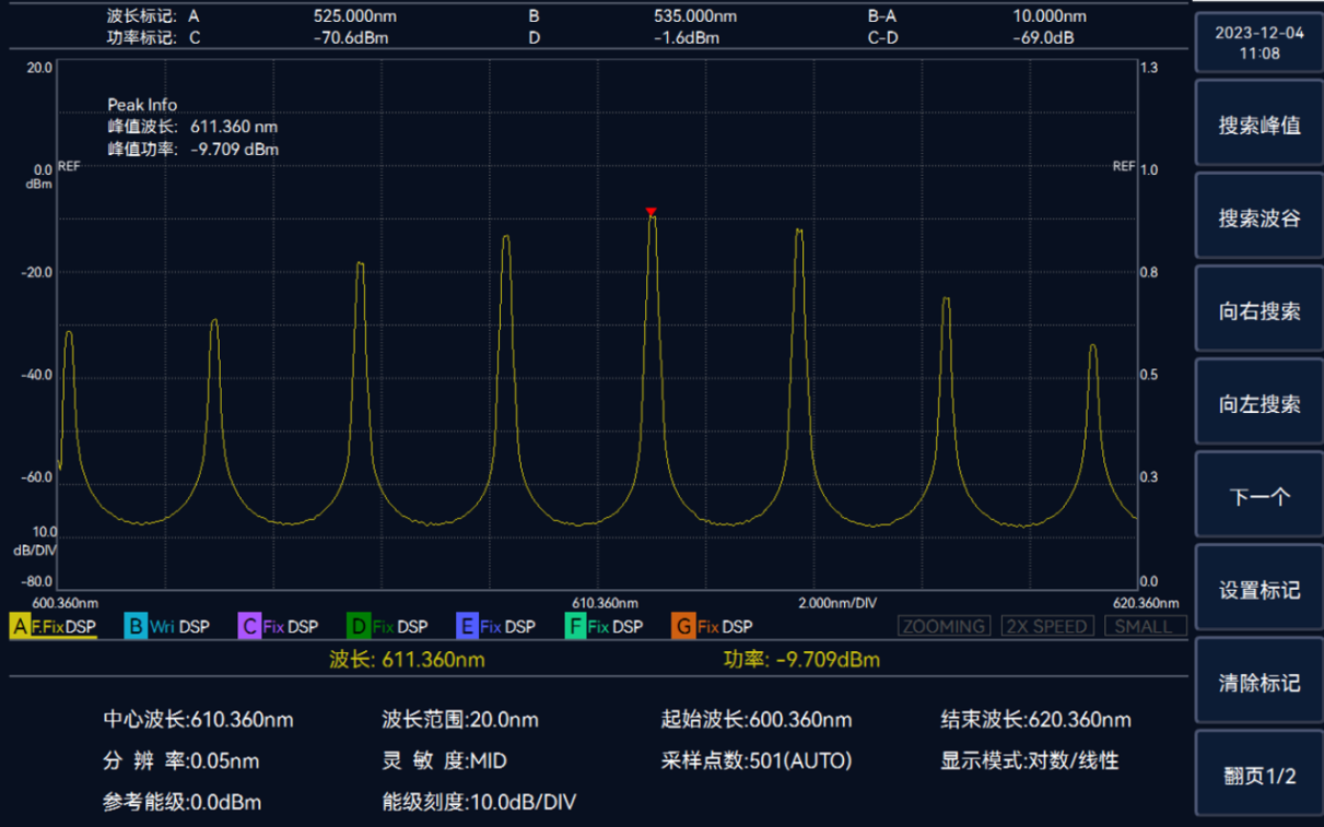 6362C光譜分析儀支持不同光譜分辨率(lǜ)的設置,多種光譜(pǔ)分辨率設置靈活切換,最小光譜分辨率優於(yú)20pm。