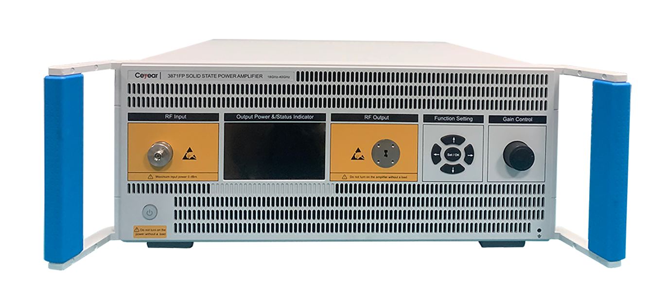 固態功率放大器前麵(miàn)板設計簡潔明了,其中3871係(xì)列具有用戶界麵友好及操作簡單方便等特點(diǎn),工作頻率最高可達170GHz,可(kě)分頻段實現(xiàn)相應工作頻(pín)率範圍內輸(shū)入(rù)信號的功率放大。