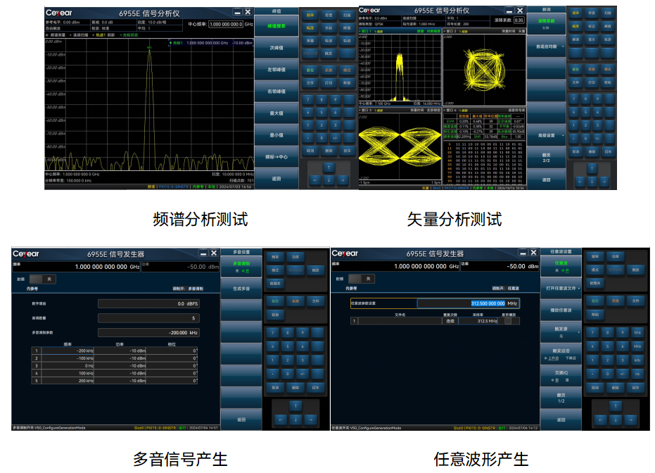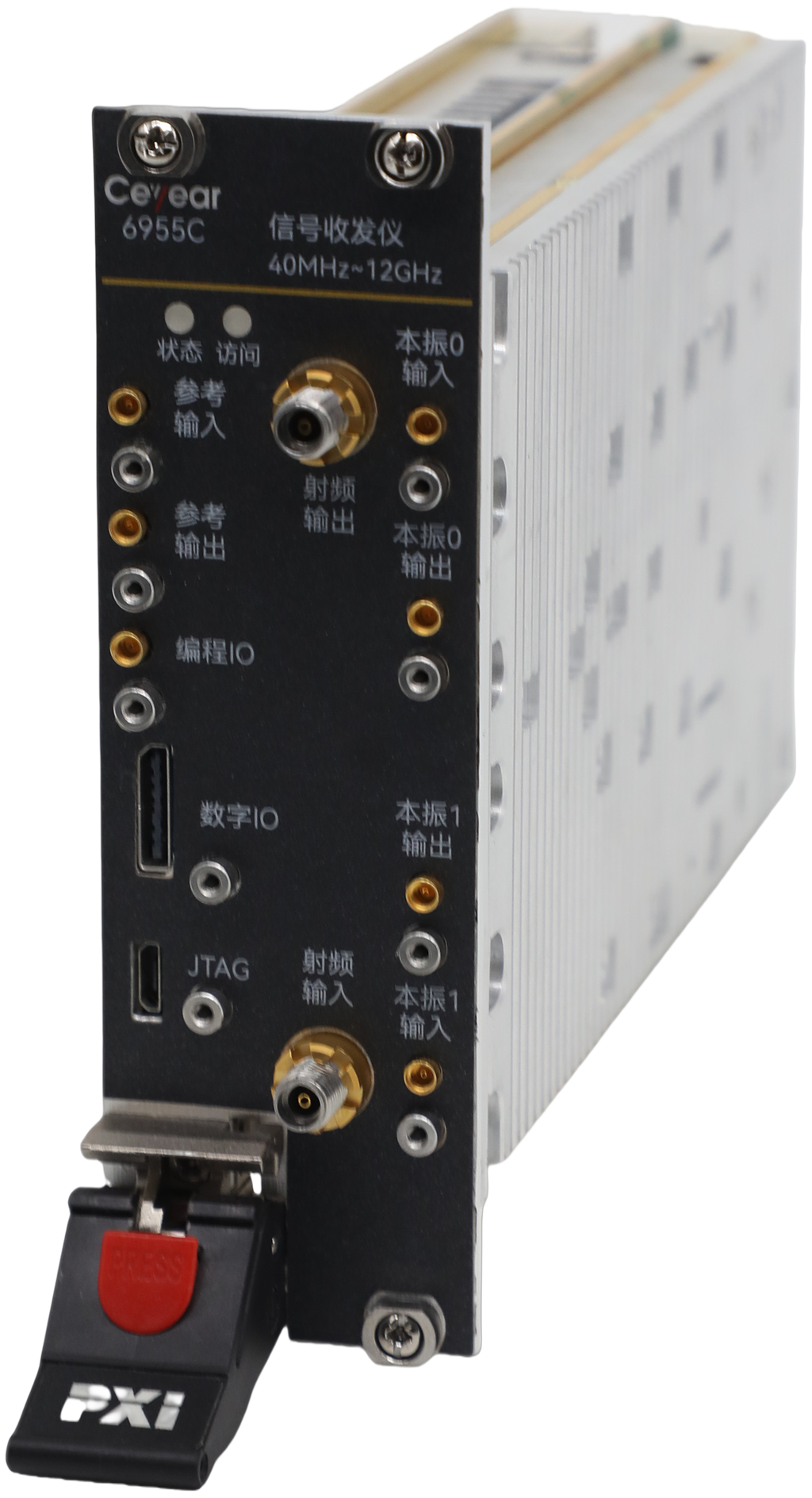 6955BA/C/E信號收發儀為符(fú)合PXIe總線標準的(de)3U模塊化產品,該模塊頻率範圍覆蓋40MHz~8GHz/12GHz/26.5GHz、最大信號帶寬1GHz、單邊帶相位噪聲為-120dBc/Hz@20kHz頻偏(載波10GHz,典型值),具有矢量信(xìn)號分析、矢量信號發生與基於FPGA的實時信號處理和控製能力,能夠同時完成微波矢量信(xìn)號的接收與發射,對信(xìn)號數據進行(háng)高速大容量存儲與(yǔ)處理。優異的性能使其可廣泛應用於射頻半導體、通(tōng)信係統、導航模擬、5G測試、物聯網測試和收發類設備測試(shì)等領域。