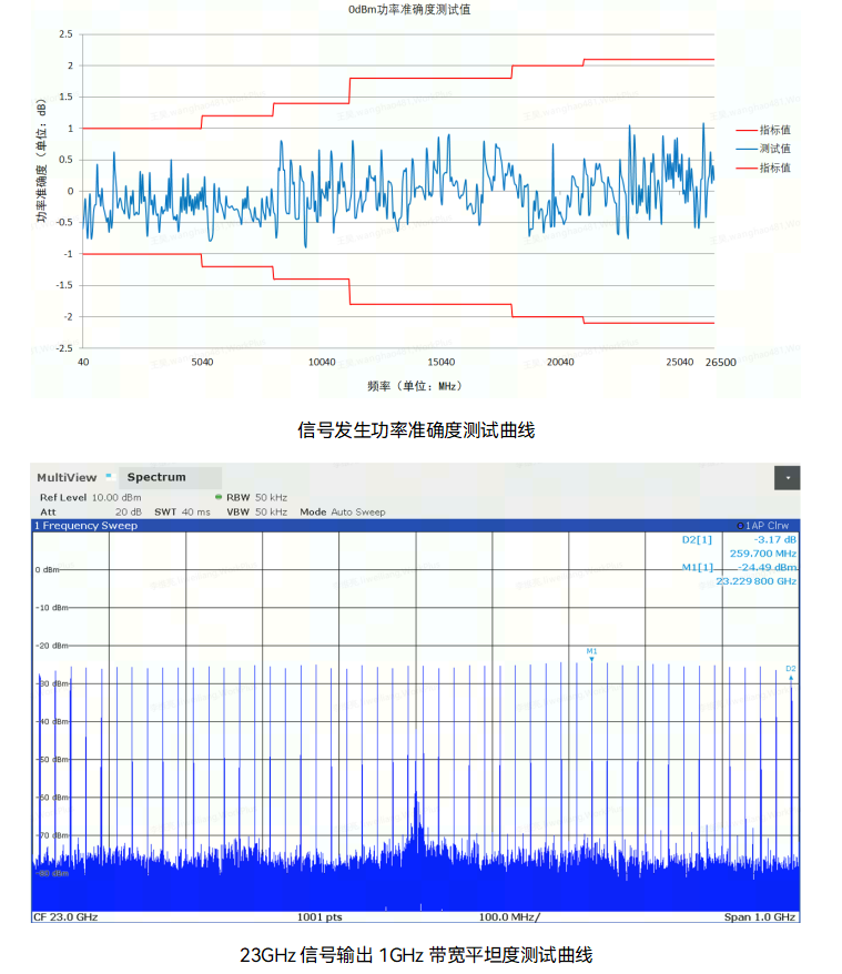 23GHz信號輸出1GHz帶寬平坦度測試曲(qǔ)線