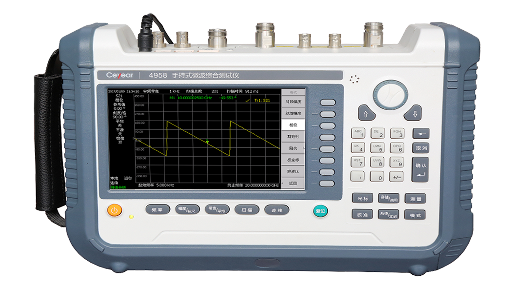 4958手持式微波綜合測試儀測量頻率範圍可達1MHz~20GHz,集電纜和(hé)天線駐波比測試、不連續點故障定位測(cè)試、插入損耗和(hé)增益測試、頻(pín)譜分析、功率測量等多種功(gōng)能於一體,攜帶方便,機動靈活,可電池供電,非常適用於現場測試。該儀器(qì)可(kě)廣泛應用(yòng)於電子裝備的現場裝調、性能測試、日常維護和應急維修(xiū)測試等各個環節,能夠有效提高用戶的現(xiàn)場維修保障能力。