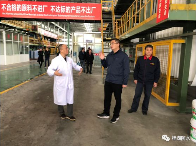 本次考察之行,通過現場調研、檢查環保處(chù)理係統,卿偉市長一(yī)行(háng)表示環保工作是企業的生命線,決(jué)不可輕(qīng)視。最近一年(nián)來桂湖防水一直是當地(dì)企業(yè)的環保標杆,作為什邡重點企業,卿(qīng)偉市(shì)長一行領導對桂湖(hú)企業在以後的工作中提出了更多的要求:一是要提(tí)高思想認識(shí),重(chóng)視環(huán)保工作;二是查缺補漏,點滴到位;三是(shì)管理到位,所(suǒ)有(yǒu)工作落到實處。同時,卿偉市長一行對桂湖(hú)防水(shuǐ)的進一步發展給予了關切指導,鼓勵桂湖企業(yè)積極抓住“中國製造2025”的發(fā)展(zhǎn)機遇,在更廣泛的市場領域中發揮更多的社會價(jià)值;並希望桂湖集團在今後的發展中更進(jìn)一(yī)步(bù),早日實現衝出亞洲,走向世界的宏偉目標(biāo)。