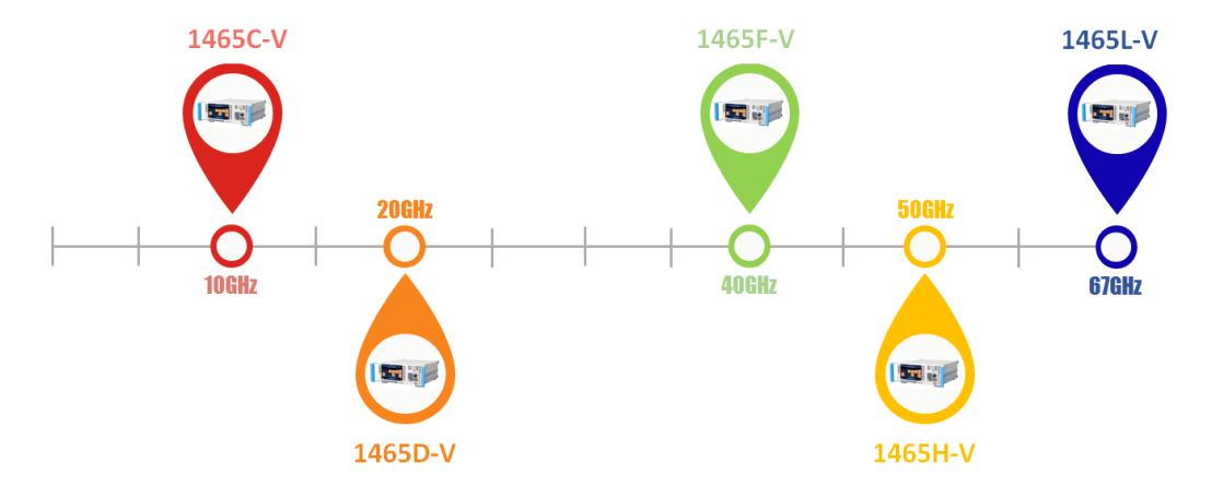 1465-V係列信號發生器能夠根據(jù)不同領域用戶的具體需求,提(tí)供頻率上限分別覆蓋10GHz/20GHz/40GHz/50GHz/67GHz的多(duō)種測試方案。尤其是1465L-V型信號發生器100kHz~67GHz的寬頻段覆蓋的特性可滿足絕大多數用戶的測試需(xū)求。