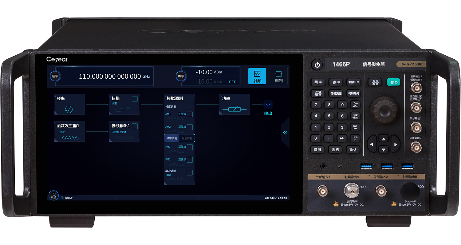 1466係列信號發生器是一款(kuǎn)麵向微(wēi)波毫米波尖端測試的通用測試儀器,頻率範圍覆蓋寬、信號頻譜純度高,具有高準確度和大(dà)動態範圍的(de)功率(lǜ)輸出,搭配單機雙射(shè)頻通道的設計,可(kě)滿足用戶多種(zhǒng)測試要求。模擬掃描、模(mó)擬調製、脈衝調製等豐富的內置功能讓測試更加得心應手。全新升級人機交互,具有(yǒu)大屏(píng)觸控圖形引導交互、移動端瀏覽器(qì)訪問控製、多廠家功率計連接識別、SCPI命令錄製、操控界(jiè)麵自定義等一係列新功能,打造用戶的測(cè)試幸福感。1466係列信號發生器是射頻(pín)、微波及毫米波相關技術領域從元器件級到係統級高標準(zhǔn)測試的理想選擇。