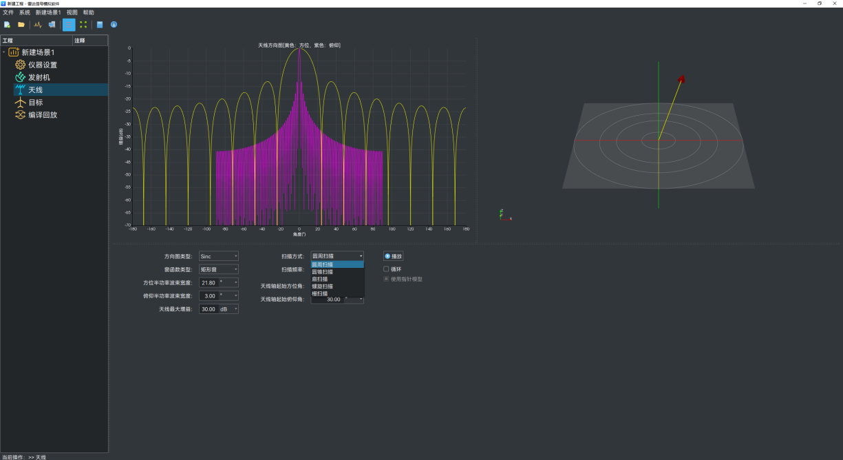 •   支持(chí)模擬多種天線掃描方式,並可自定義設置(zhì)天線方向圖。