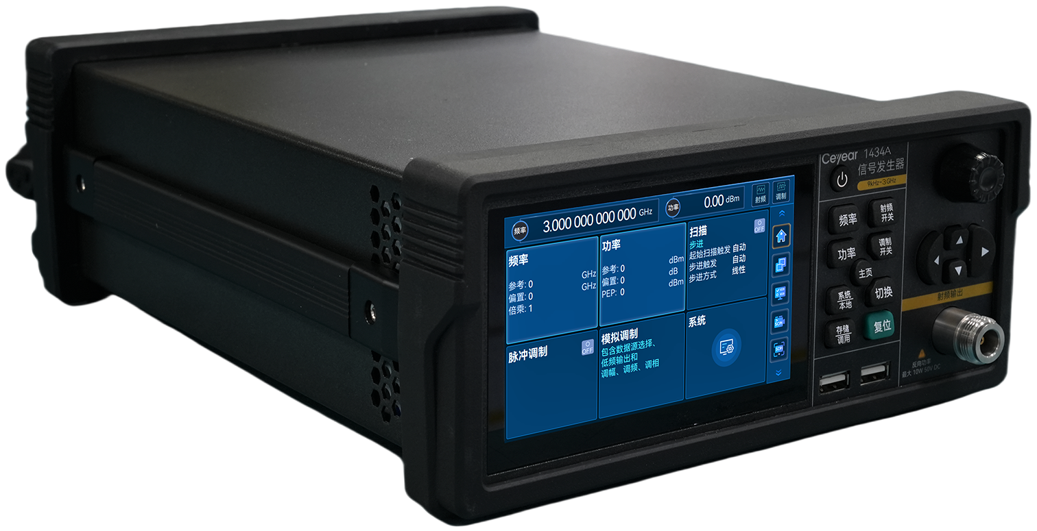 1434A/D/G信號發生(shēng)器是一(yī)款經(jīng)濟型模擬信(xìn)號發生器。頻率範圍覆蓋9kHz~3GHz/6GHz/20GHz/45GHz,具備豐(fēng)富(fù)的調製功(gōng)能(néng),涵蓋調頻、調相、調幅、脈(mò)衝調製等多種調製樣式。2U便(biàn)攜式機箱結構,體積小巧,重量(liàng)低(dī)至5.2kg,便於攜帶。在緊(jǐn)湊的空間內(nèi)實現優異的性能,可滿足通信、工業(yè)電子、高校(xiào)等多(duō)領域測試需求。