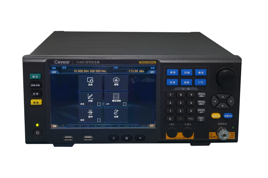 1436係列(liè)信號發生器基於(yú)創新的技術實現了性能、經濟性和體積重(chóng)量的平衡設計。具有優良的頻譜純度,單邊帶相位噪聲1GHz載波@10kHz頻偏達到-136dBc/Hz,10GHz載波@10kHz頻偏達到-120dBc/Hz;具(jù)有高功率(lǜ)輸出和大動態範圍(wéi),最大輸出功率可達20dBm@20GHz,動態範圍大於(yú)150dB;可實現快速頻率切換,頻率切換時間1ms,縮短測試時間提高測試效率,滿足(zú)海量數據測試需求;具有性能優異的模擬調製、脈衝調製功能(néng)。采用先(xiān)進的(de)頻率合成和(hé)射(shè)頻通道信號處理技術,獲得高性能的同時降低了成本。具有7寸高靈敏度觸摸LED屏,同時支持觸摸(mō)屏、麵板按鍵、旋轉按鈕、外接鼠標鍵盤等多種(zhǒng)操作方式,操作體驗全(quán)麵升級。3U便(biàn)攜(xié)式機箱結構,體積小重量輕,便於攜(xié)帶。1436係列信號發生器既可以滿足研發階(jiē)段對性(xìng)能測試的需求,也(yě)可以滿足生(shēng)產階段對(duì)高效率測試的需求。
