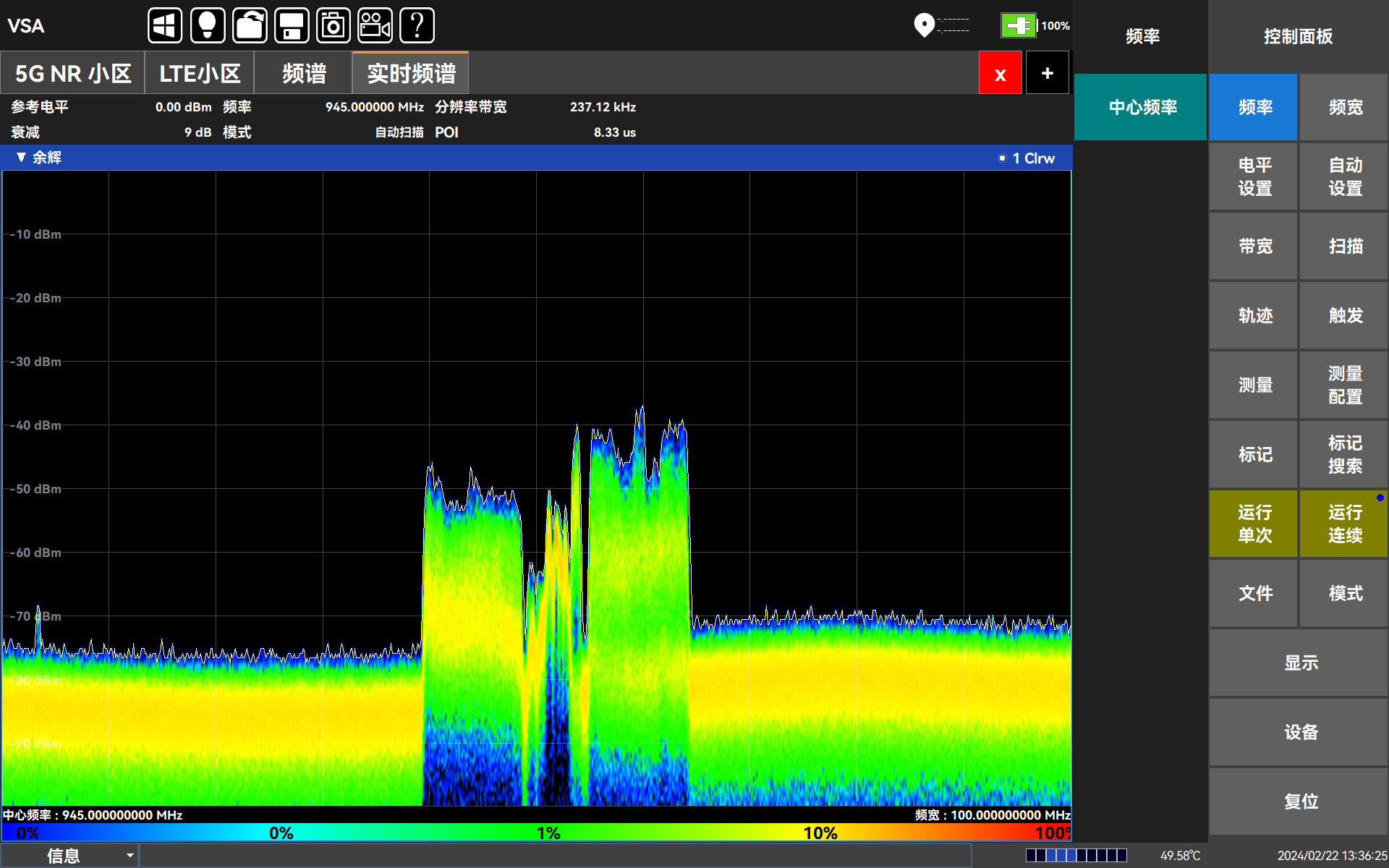 5252DG外場(chǎng)通(tōng)信測(cè)試(shì)儀是集合高性能信號分析模塊、多製式解(jiě)析算法軟件於一體的手持式測試儀表,是為滿足(zú)運營商對移動通(tōng)信的測(cè)試而推出的全新平台。其擁有更高測試頻率、更大解析帶寬、更快(kuài)掃描速度、更低接收靈(líng)敏度以及豐富的接口。同時具備幹擾分析、無線信號測向定位(wèi)、場強測試、5GNR/TDD-LTE/FDD-LTE/NB-IoT/WCDMA/GSM信號解析等多種測量功能。5252DG體積小、重量輕、供電靈活、支持雲操控,適合(hé)外場(chǎng)基站測試與部署。